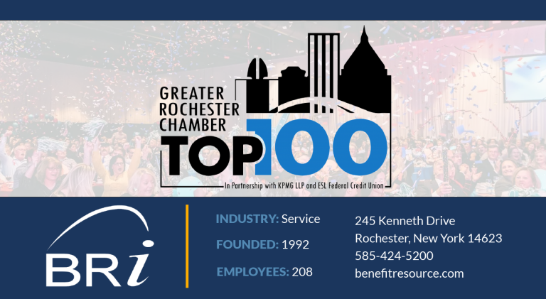 Benefit Resource (BRI) is proud to be listed for the second year on the 2021 Greater Rochester Chamber Top 100 list of fastest-growing, privately-owned companies. Known for its entrepreneurial spirit and innovation, the Chamber recognizes the Top 100 companies that best represent Rochester each year. Last week, the Greater Rochester Chamber of Commerce, ESL Federal […]